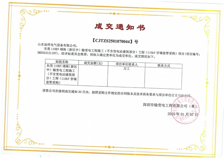 2025.01.03 交流穿墻套管中標(biāo)通知書(shū)