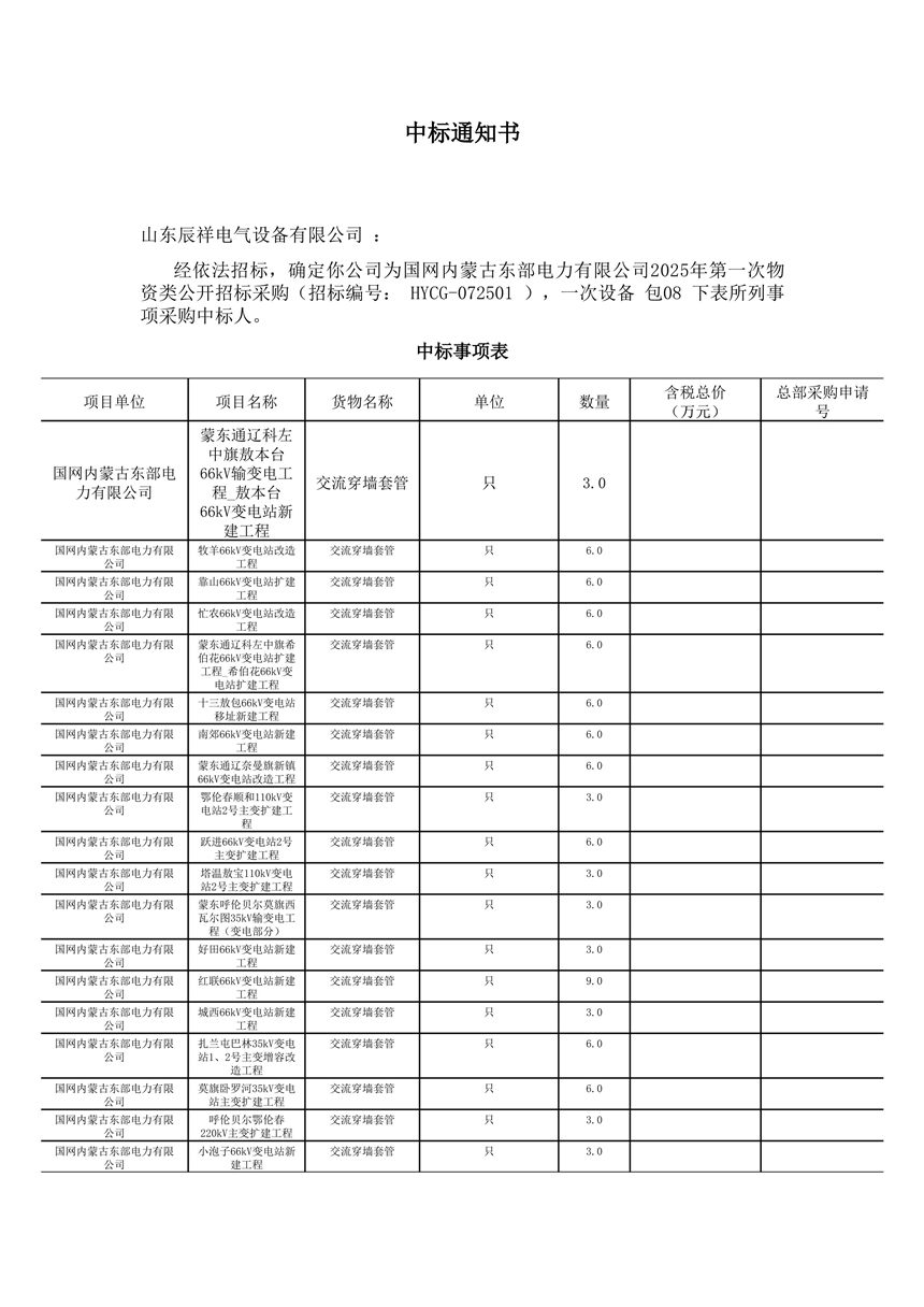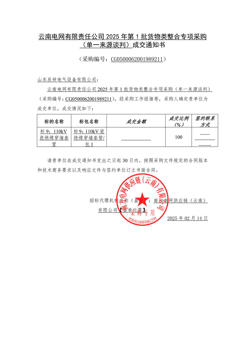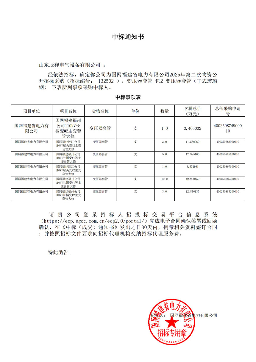 2025.02.14 110kV瓷絕緣穿墻套管中標(biāo)通知書(shū)